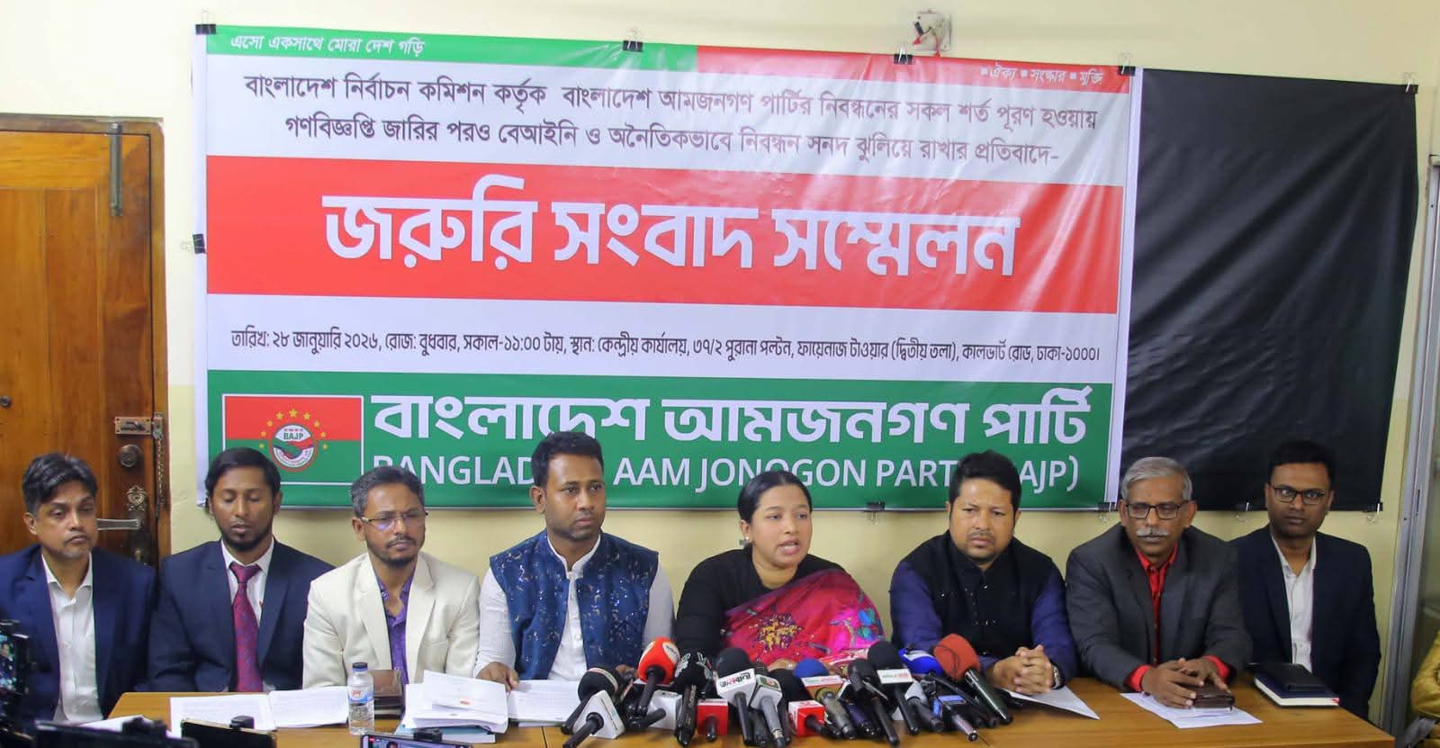 ইসি’র ‘অদৃশ্য হস্তক্ষেপে’ নিবন্ধন বঞ্চিত করার অভিযোগ: আমজনগণ পার্টির সংবাদ সম্মেলন