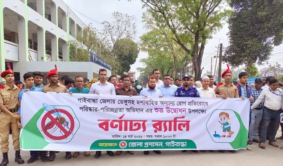 ডেঙ্গু প্রতিরোধে পরিচ্ছন্নতা অভিযান ও বর্ণাঢ্য র্যালি অনুষ্ঠিত হয়েছে গাইবান্ধায়